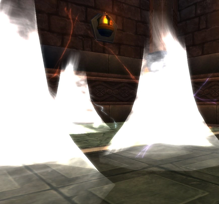 Some rooms are filled with whirling storm energies that wander back and forth. Think of this like jump-rope. Watch the patterns of movement, analyze the spaces and run for it. Sadly, you do not need to touch one to get hit, and getting hit will hurt, a lot, and slow you down, but you can survive it... once. Do not get hit multiple times! You know what the plate-armor-wearing-tank said after lightning hit him a second time? Nothing. He said nothing because he was DEAD!